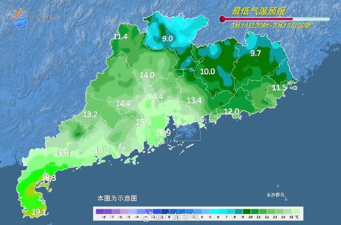 3月14日20时至(zhi)3月15日20时最低(di)气温预报图。