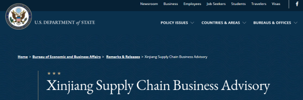 美国国务(wu)院有(you)关新疆供应(ying)链的商业警(jing)示截(jie)图
