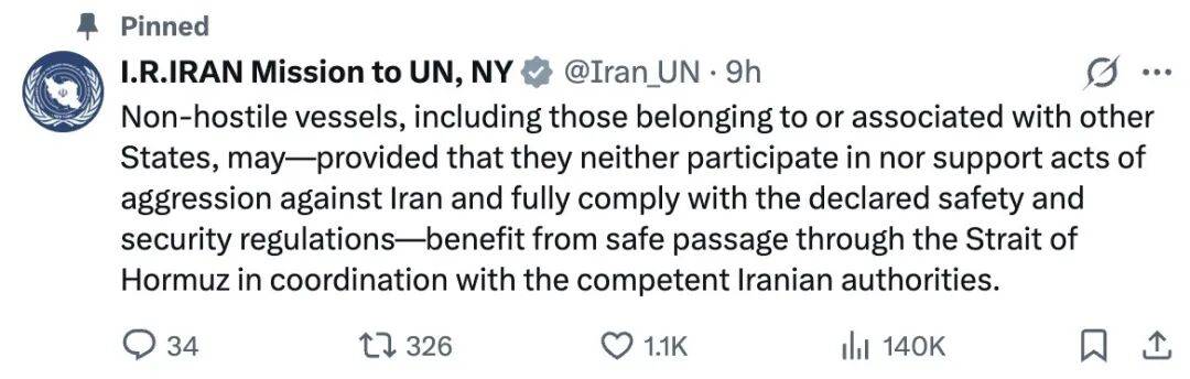 声明称,只要(yao)该船只所属国不参与(yu)或支持针对伊朗(lang)的(de)敌(di)对行动(dong),并全面遵守已公布(bu)的(de)安全和安保规定,即(ji)可(ke)在与(yu)伊朗(lang)相关主管(guan)部门协(xie)调的(de)情况下(xia),享有(you)通过霍尔木兹海峡的(de)安全通行权。